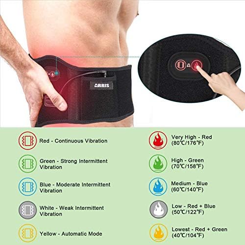 ★【Portable Back Brace with Heating and Vibration】- 5 heat & 5 vibrating setting. Vibration combined with hot therapy offers complete pain relief & relaxation to muscles and reduces stress, helps accelerate recovery from injuries while delivering targeted relief from pain for lower back. Heat & Massage mode can work together or work separately.