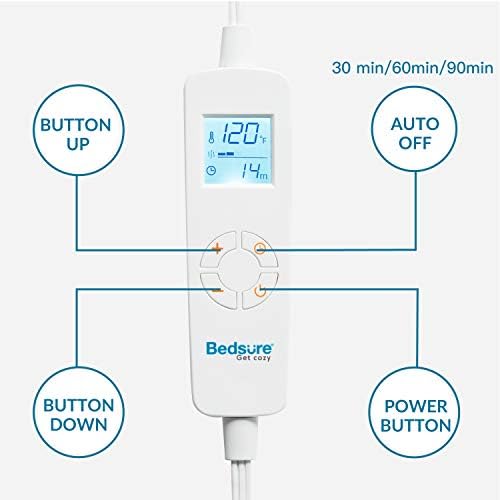 Personalized Design: Conveniently set the heat level with the connected controller to customize your desired temperature. There are 6 heat levels with 10°F intervals (105°F-155°F). This heating pad also includes an automatic switch-off function with 3 time settings (30 minutes, 1 hour or 1.5 hours).