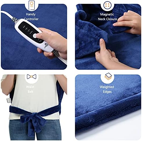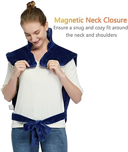 😊PORTABLE & STABLE: This heating wrap stays in place around the back, neck, and shoulder areas using snap fasteners, weighted edges, and straps. The stability of the heat pad wrap and 108-inch-long power cord provides mobility around the house