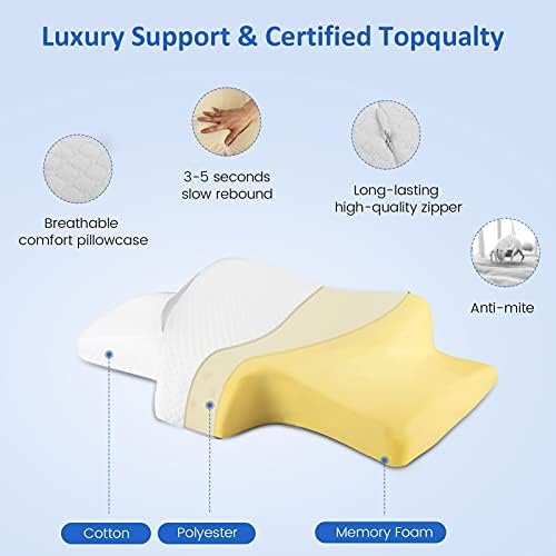 【Premium Memory Foam Pillow】 Cervical neck pillow core is made of high-density memory foam. It provides firm support with amazing comfort and softness when you are on back, side or stomach sleeping, evenly distributes the pressure and traction the cervical spine that lending to a better blood flow. Moreover, it can slow rebound its shape within a few minutes and keep its shape and firmness for long term use