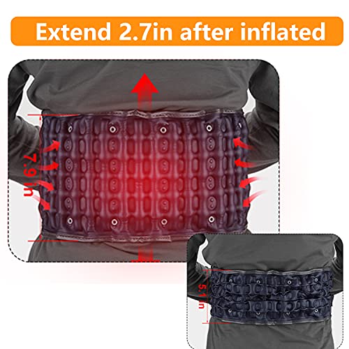 The back belt stretches lower back as it inflates with air(width will extend about 2.7 in) . This gentle traction helps decompress the spinal discs.
