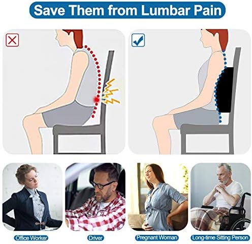 Alleviates Lower Back Pain and Posture Improved – LOVEHOME lumbar support for office chair is helpful to relieve lower and mid back pain and tightness from long time sitting or driving; support your back’s curve to achieve perfect spinal alignment and promote a healthy posture. Chiropractor recommended orthopedic chair back support for post-surgery recovery and people who suffers from Lumbosacral lower back pain and Spondylosis, etc.