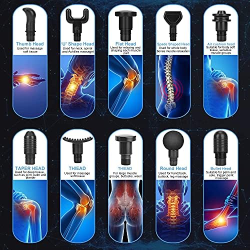 10 REPLACEABLE MASSAGE HEADS: Comes with 10 customized massager heads allow you to reach every muscle, providing a targeted massage head for each muscle, which will provide you a different massage experiences