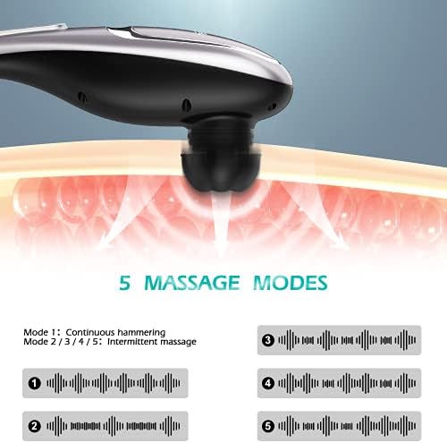 [ 5 Interchangeable Attachments ] This massager has 5 interchangeable nodes for massage any part of your body,and targeted functions.Point massage head suitable for specific acupuncture points,relieves muscle pain,just like a human hand massage.