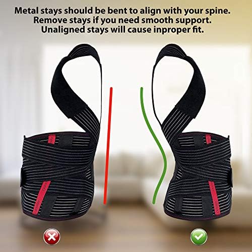 INNOVATIVE FEATURES FOR MAXIMIZED EFFECT: The construction of the fabric and the design of the brace allow to evenly distribute pressure. The design of the brace promotes proper posture by pulling the shoulders back and aligning the spine. Removable metal stays ensure additional stable support. The soft contoured lumbar pad cushions the lower back and keeps it tension-free, along with providing extra stability. Adjustable criss-crossed straps allow to customize fit and support.