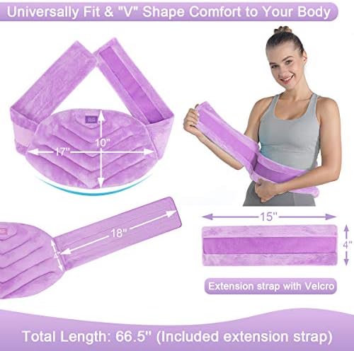 Universal Fit Snugly for Most of Body Sizes – The microwave heating pad is universal fit for most of body sizes or shapes with the long adjustable sticky strap and 15*4.5 inches extension straps included for extended length to apply the heat wrap on your shoulder. The heat area measures 17.7″x11.2″, the total length is 54″. Designed with unique V shape, the microwave back wrap conforms around the body snugly.