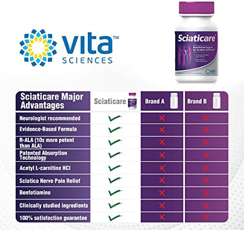 ❤️ SCIATICA NERVE PAIN RELIEF and SCIATICA TREATMENT for SCIATICA PAIN RELIEF, Nerve Pain Relief with natural ingredients – Each pill of Sciaticare – Sciatica Pain Relief contains a powerful combination of non-chemical nutrients that support your lower lumbar nerves and soothe the discomfort of cramps and sharp nerve pain. 2 pills a day keep the Sciatica nerve pain away.